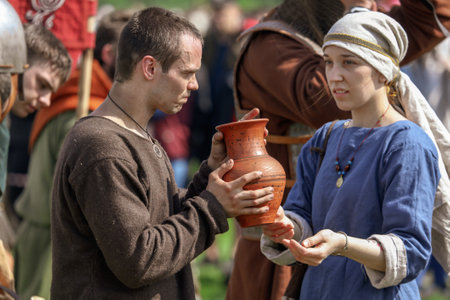 Moscow, Russia - September 04, 2011: Middle ages Vikings in historical military dresses, Historical festival devoted to the Day of Moscow in park Kolomenskoye, September 4, 2011, in Moscow, Russia.