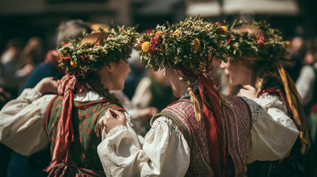 Warsaw, Poland - 20 June 2015: girls with herbal wreaths on midsummer holiday