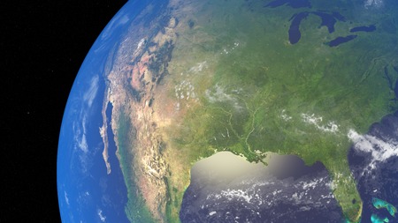 Satellite view of Planet Earth, focused on North America, USA, Canada, Mexico and Central America, deep space and star constellations behind. 3D illustration
