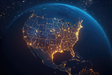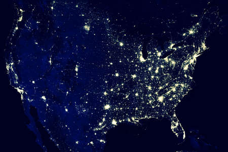 United States of America lights during night as it looks like from space.