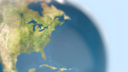 North America on a globe with selective focus.