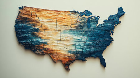 A colorful relief map of the U.S. showcases its topography, highlighting mountains, valleys, and plains to enhance understanding of the landscape.