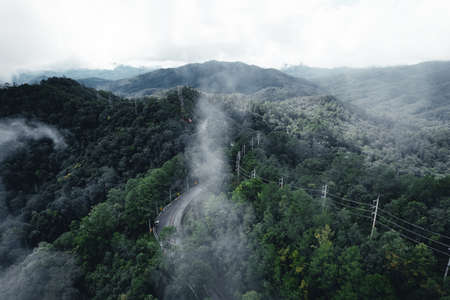 aerial view mist above the mountain in tropical rainforest and