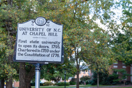 Chapel Hill, NC / USA - October 22, 2020: University of North Carolina at Chapel Hill, UNC, historical marker, marking its open in 1795