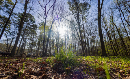 Sunny view of the Cypress Campground in Beavers Bend State Park at Oklahoma