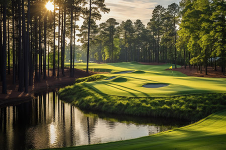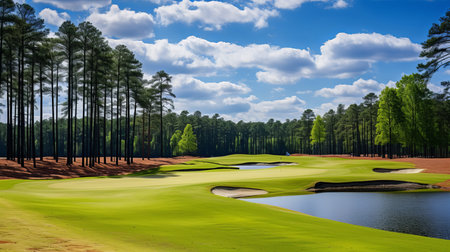 A Picturesque View of a Pristine Golf Course Landscape. Concept Nature Photography, Golf Course Scenery, Serene Landscapes, Outdoor Recreation
