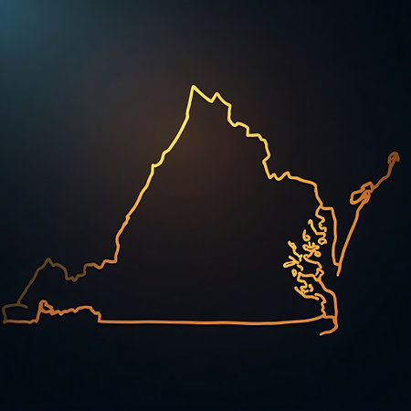 Glowing Map of North Carolina, modern blue outline map, on dark Background