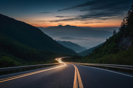 Highway in the mountains at sunset. Beautiful landscape with a long exposure.