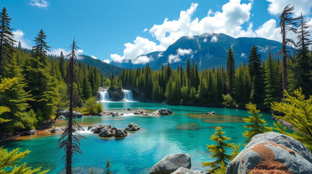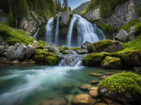 waterfall in the background, created with generative ai