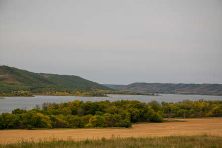 Scenic River Valley with trees in Autumn.