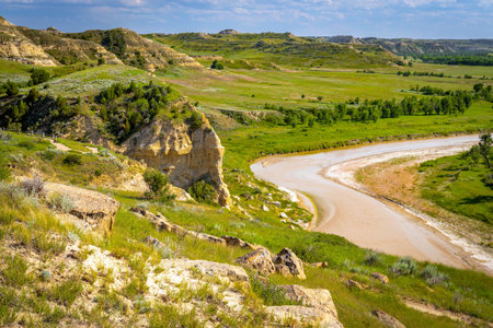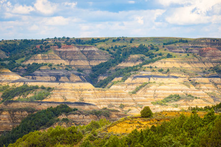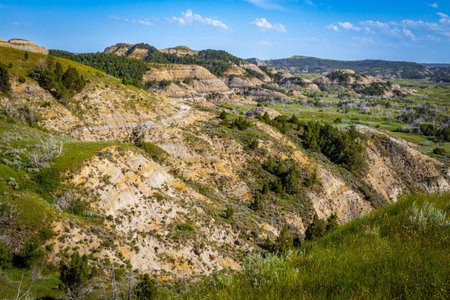 Theodore Roosevelt National Park badlands scenery near Medora, North Dakota in summer