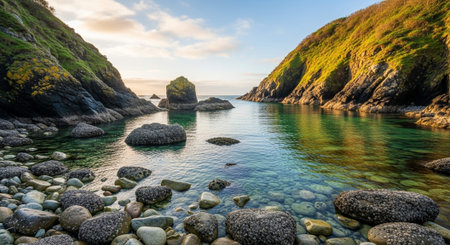 Tranquil sunrise by the sea in south coast of Ireland, Dunmore East, County Waterford.