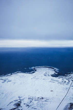 Aerial view of a cold atmosphere over Iceland coast