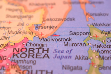 Vladivostock With Neighboring Countries And Cities On World Map- Political Map Background Blur Image