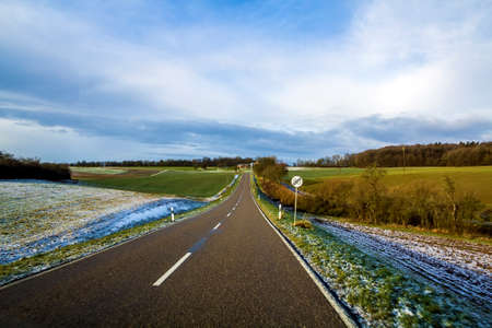Springtime in Franconia, Germany. Landscape Image of a Hill Landscape near Rosdach with a beautiful country road in the evening, popular for motorcycling