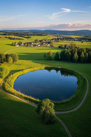 Aerial view of the idyllic rural lake