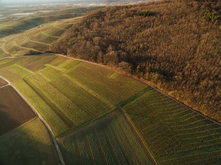 vineyards landscape on the hill from top with drone, dji