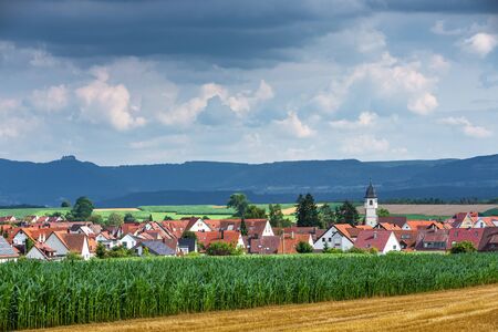 village Wolfschlugen in Germany in late summer with view to the Suabian Alb