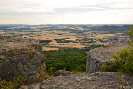 view from Kyffhaeuser monument tio the valley and rural area in Thuringia, Germany.