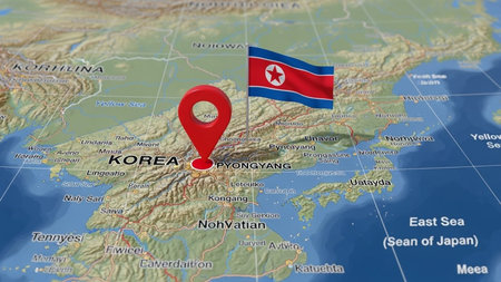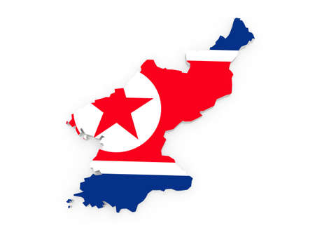 Map of North Korea with flag, focus on North Korea. 3D rendering