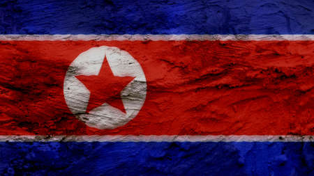 North Korea Politics Concept: North Korean Flag Wall Background Texture