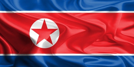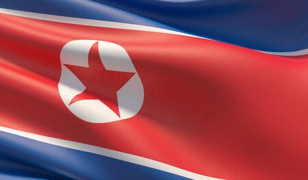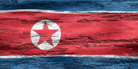 North korea flag painting on high detail of wave cotton fabrics . 3D illustration .