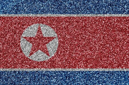 North Korea flag depicted on many small shiny sequins. Colorful festival background for disco party