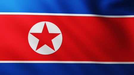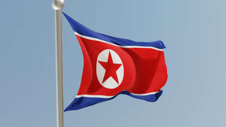 North Korean flag on flagpole. DPRK flag fluttering in the wind. 3D render.
