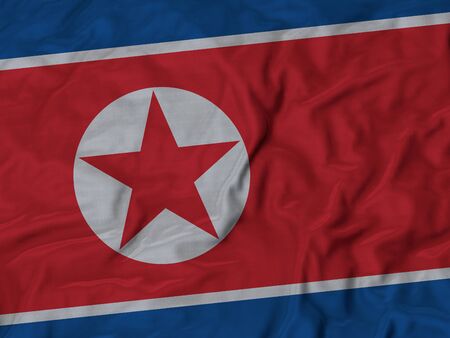 Closeup of ruffled North Korea flag, Ruffled flag background.
