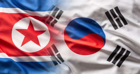 North Korea national flag of country. North Korea flag on the display, a digital moire effect. News of geography and geopolitics
