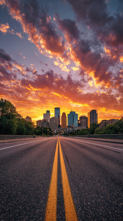 Large City Stunning Shots Highway And Clouds generative ai