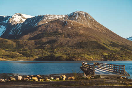 Frozen fjords in Norway, beautiful sunlight and reflection in the water