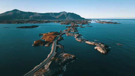 The Atlantic Ocean Road (Originally in Norwegian: Atlanterhavsvegen or Atlanterhavsveien), the road runs over dozens of small islands, M?re og Romsdal, Norway 2019