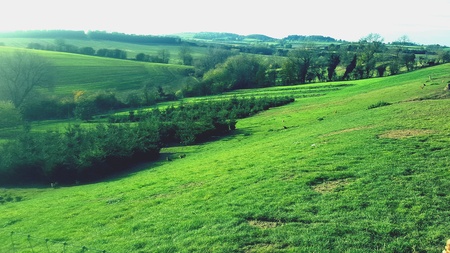 Cloudy view over the Chilterns in Buckinghamshire, England Vintage Retro Filter.