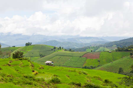 nature landscape with terraces fields and hut in Thailand