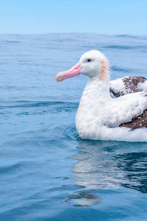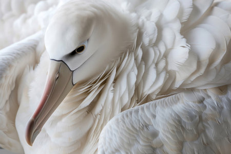 A detailed close-up shot of an elegant albatross, highlighting its graceful presence
