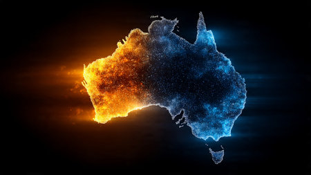A glowing map of Australia with vibrant orange and blue lights