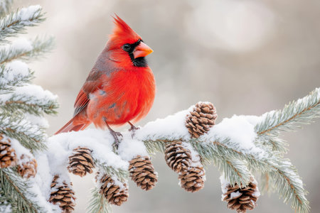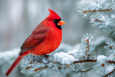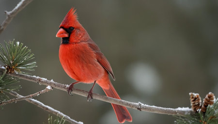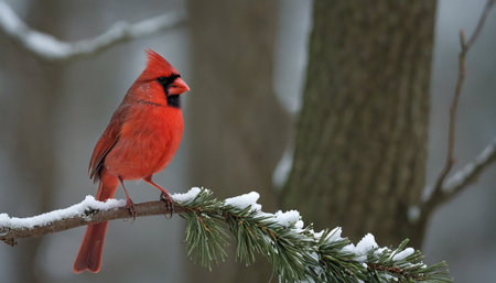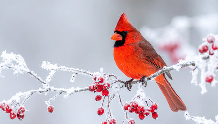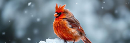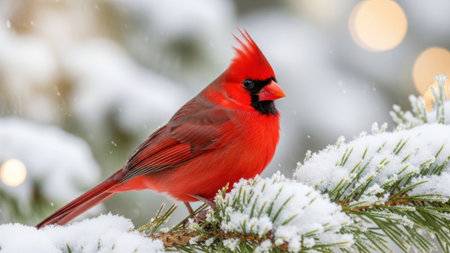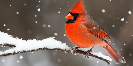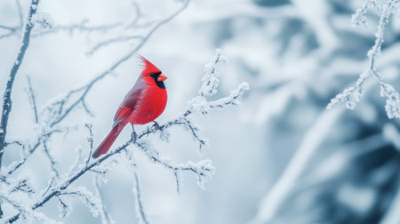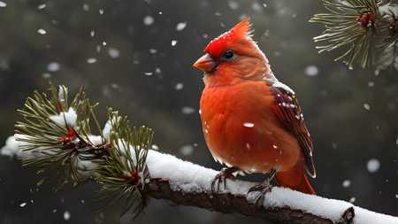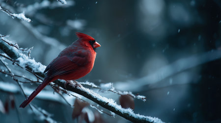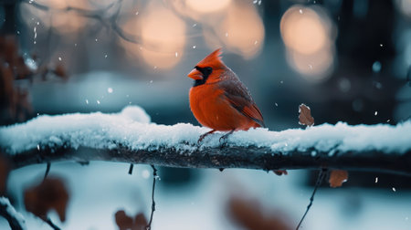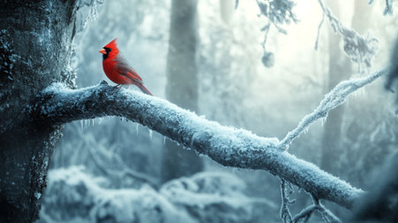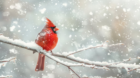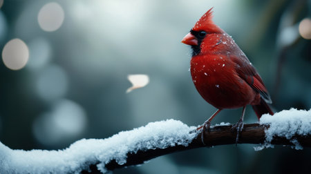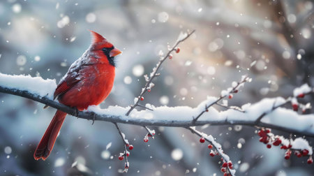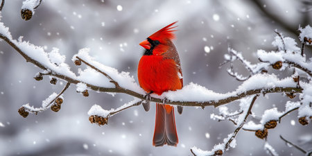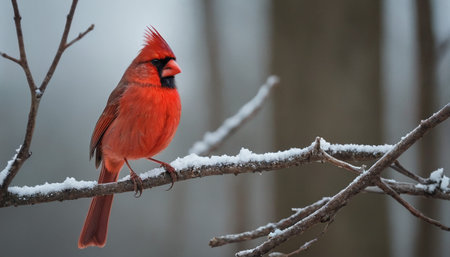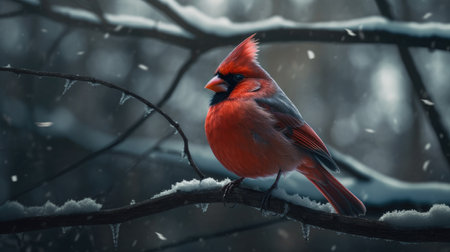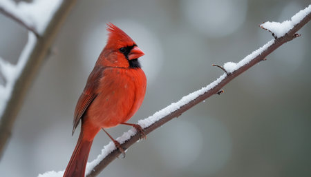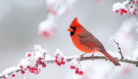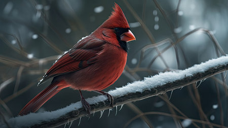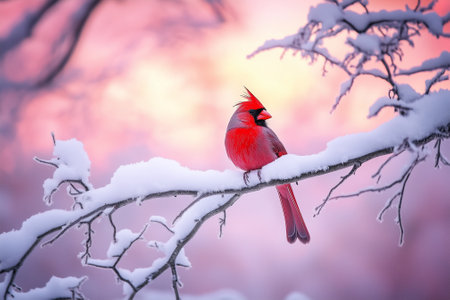 A vibrant cardinal perched on a snow-covered branch, showcasing the beauty of winter wildlife.