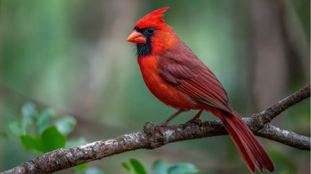 Male Northern Cardinal (cardinalis cardinalis) perched on a branch