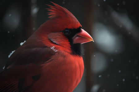 Red cardinal bird on a dark background close-up, shallow depth of field