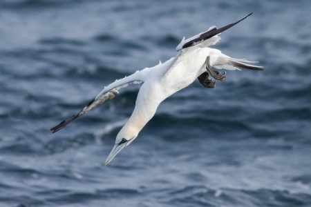 A view of a Gannet flying and Diving