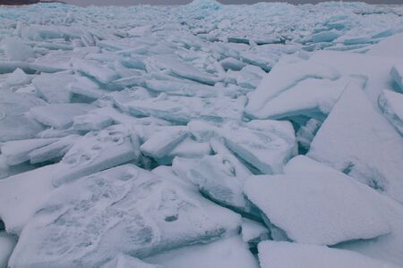 Melting ice floes on the lake. abstract nature background. Baikal lake, Siberia, Russia. beautiful spring landscape