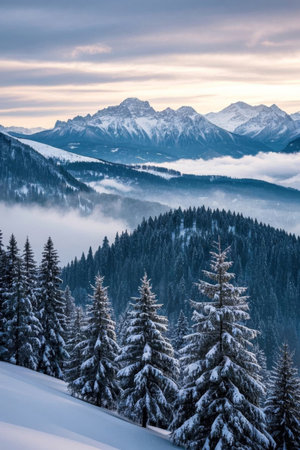 Beautiful winter landscape with snow and trees