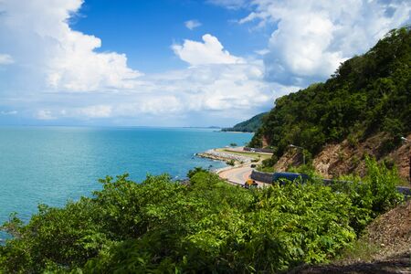The beach road with mountains, sea, beautiful sky.