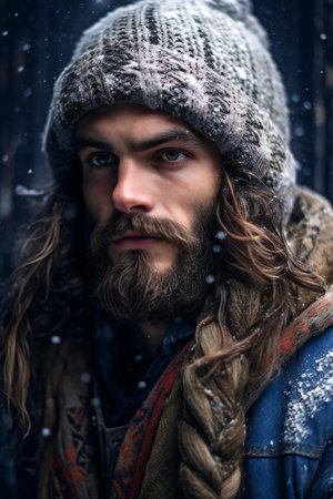 Portrait of a bearded man in the snow