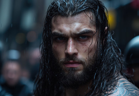 Rugged Warrior with Intense Gaze