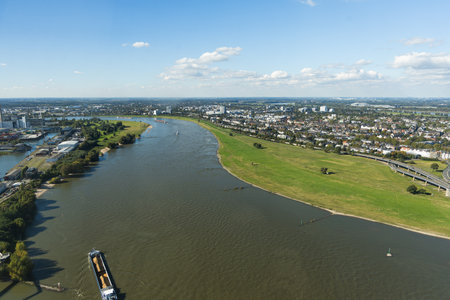 Duisburg Ruhr Area. Rhein River. Drone Aerial in autumn