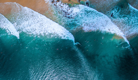 Bird's-eye view of a beautiful beach with sea waves