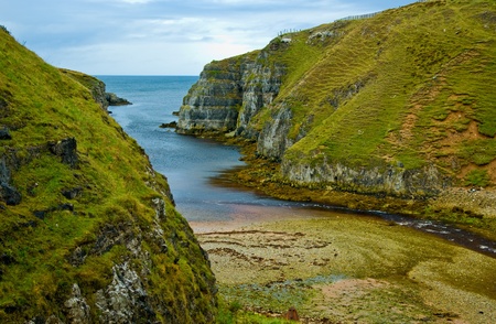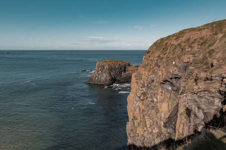 The White Cliffs Of Carrick A Rede in Ballintoy, Co. Antrim, Northern Ireland. Scenic landscape. Sunny day. Part of the Causeway Coastal Route.