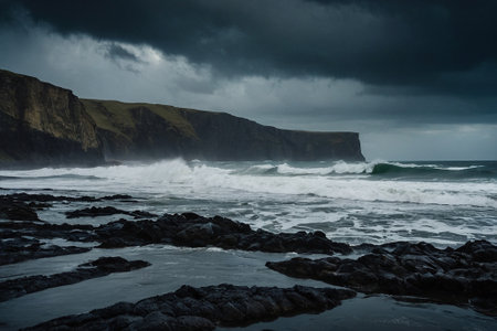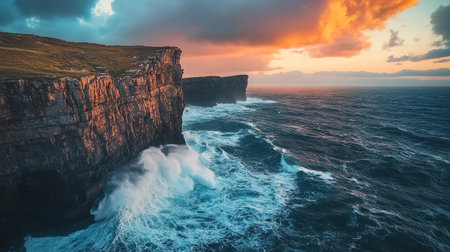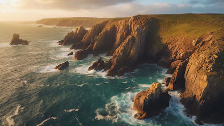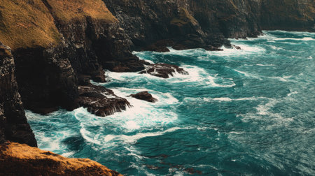Stunning coastal cliffs with waves crashing against the rugged shoreline